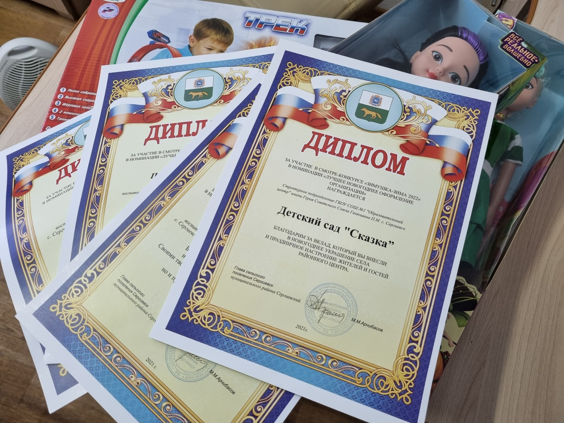 Праздник в детском саду – это смена будничной деятельности, яркое, радостное событие в жизни ребёнка. Трудно представить себе праздник без сюрпризных моментов. Именно они вносят в будни элемент загадочности и мистификации. Вот и для наших воспитанников было большой неожиданностью появление Деда Мороза и Снегурочки в группах детского сада с мешком игрушек для ребят. Сколько радости, эмоций и впечатлений было у детей, они рассказали стихи, играли в игры. Дед Мороз и Снегурочка ещё раз поздравили воспитанников и подарили игрушки на группы.