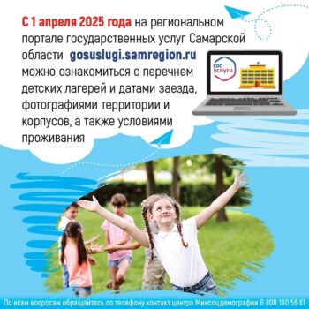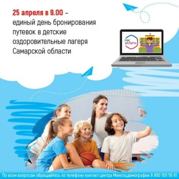 25 апреля в 9:00 на региональном портале государственных услуг Самарской области стартует бронирование путевок в детские оздоровительные лагеря.