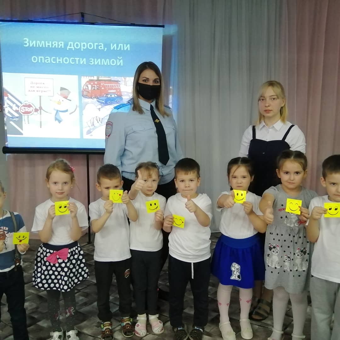 5 февраля с детьми старшей группы было проведено профилактическое мероприятие «Зимняя дорога, или опасности зимой». Дети повторили дорожные правила, поговорили о проказах зимы, из-за которых можно попасть в дорожную ловушку. Мероприятие прошло увлекательно и интересно, а главное, очень полезно для ребят в это опасное время года. Инспектор по пропаганде БДД Клюева Дарья Николаевна на практике в доступной для детей форме объяснила опасные ситуации, которые могут подстерегать юных пешеходов на дороге.